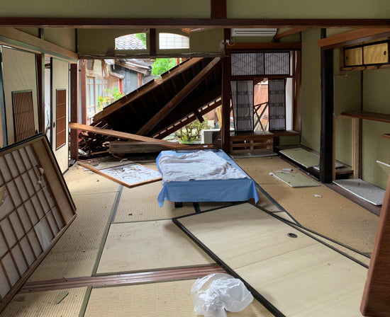 地震の2回目の激しい揺れにより築100年の母屋は一瞬にして瓦礫に。展示室は屋根と天井、壁の下敷きになってしまいました。